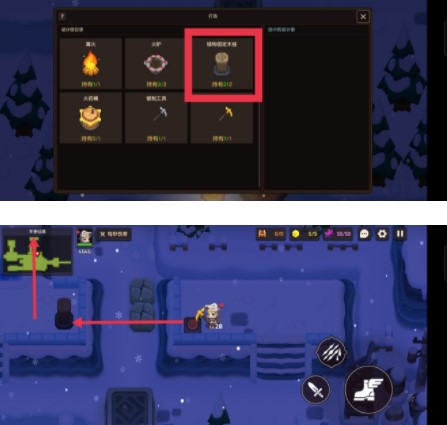 看完剧情后跟上,来到图示位置房间,用金稿子即可击败雪怪(同理银稿子打这个雪怪没伤害),击败完雪怪后看完剧情直接获取