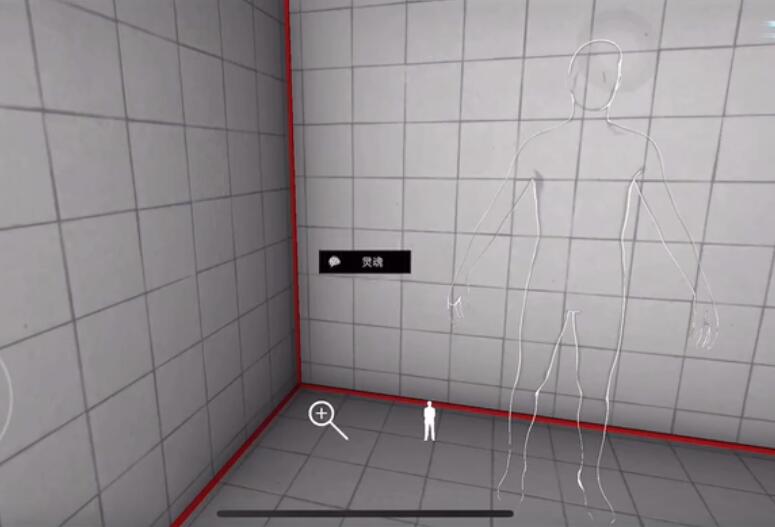 位置:在房间找到物品之后,点击眼睛穿越到新场景(场景墙壁四周全是方格)。点击透明人获取这个线索。