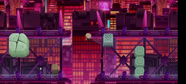 然后踩跳板跳到断桥右边,将石头推到图示位置