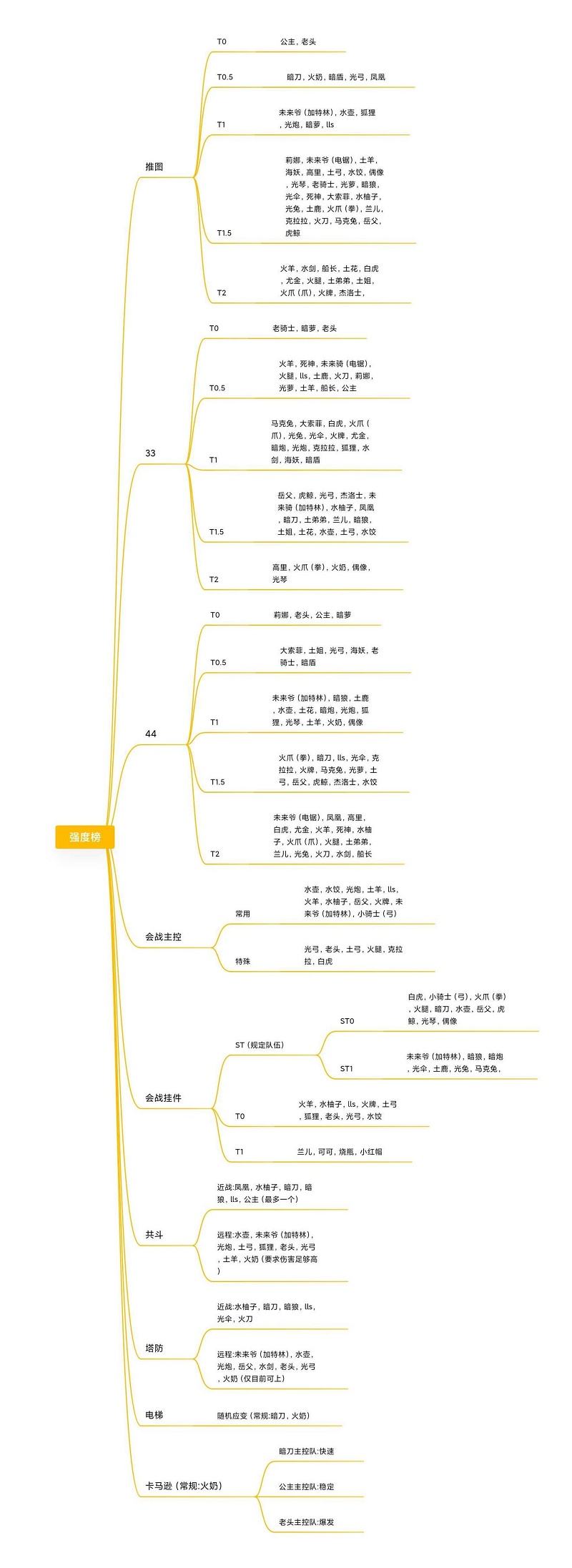 莉娜,未来爷(电糜),土羊,海妖,高里,土弓,水饺,偶像,光琴,老骑士,光萝,暗狼,光伞,死神,大索菲,水柚子,光兔,土鹿,火爪(拳),兰儿,克拉拉,火刀,马克兔,岳父,虎鲸。