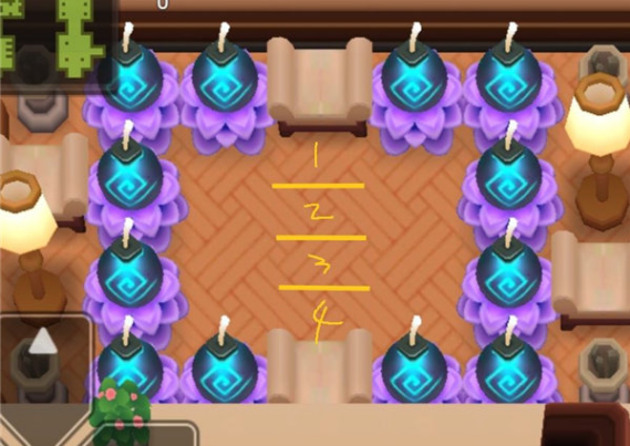 然后玩家只要观察这四颗就行了,上面闪了就跑下面,下面闪了就跑上面,基本就可以过关了。