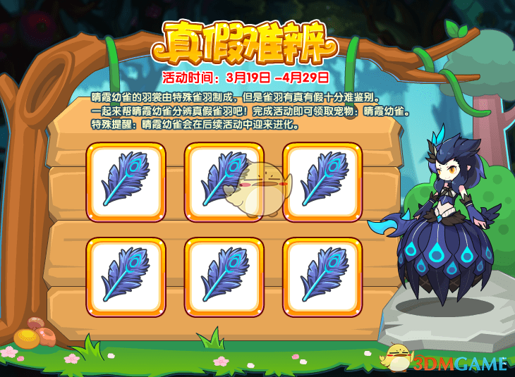 王国来了一位大家熟悉的新朋友!晴霞幼雀!听说它最近寻找特殊的雀羽制作羽裳,但雀羽有真有假,究竟哪些是真,哪些是假呢?一起来帮晴霞幼雀分辨雀羽吧!