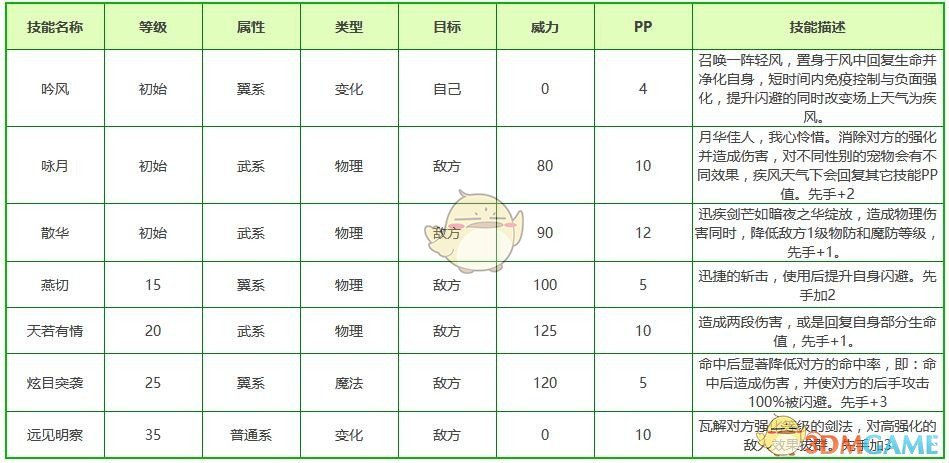 《洛克王国》宠物清明技能属性表
