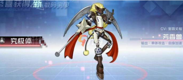 芳香兽是究极体的数码宝贝,它是由剑道兽进化成斗士兽,之后在进行进化成为骑士兽,最后进化获得芳香兽。