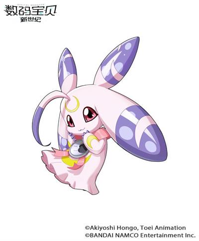 1、月亮兽:哺乳型数码宝贝,奥义技是将力量集中到额头的触角向敌人释放美丽水球的泪珠射击,还有用不断旋转耳朵产生的肥皂泡漩涡吞没敌人的垂耳波纹;