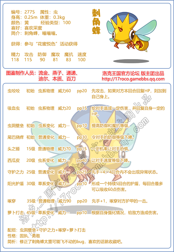 以上就是小编整理带来的《洛克王国》刺角蜂技能属性图鉴介绍,大家还喜欢吗?更多精彩内容,请点击关注易采游戏网,小编将持续为您更新!