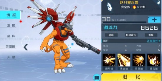 3、其中迦楼达兽是这个队伍的核心,奥义技能可以提升我方的攻击最高的火数码兽40%的伤害,可以在前几回合打出高额伤害;