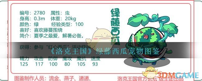 以上就是小编整理带来的《洛克王国》绿藤西瓜技能属性图鉴介绍,大家还喜欢吗?更多精彩内容,请点击关注易采游戏网,小编将持续为您更新!