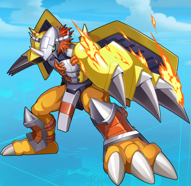 身着超金属「时之数码合金」之铠的最强龙战士,暴龙兽系数码宝贝的终极形态。与暴龙兽系数码宝贝所看到的巨大体型不同,他拥有人型的形态,不过速度、力量却有着飞跃性的提高。双臂装备的「龙兽克星(Dramon Killer)」对龙兽系数码宝贝能发挥巨大威力,不过同时也是把会对自身产生危险的双刃剑。另外,把背部装备的外壳合而为一体的话,就会成为最强硬度的盾「勇气之盾(Brave Shield)」。