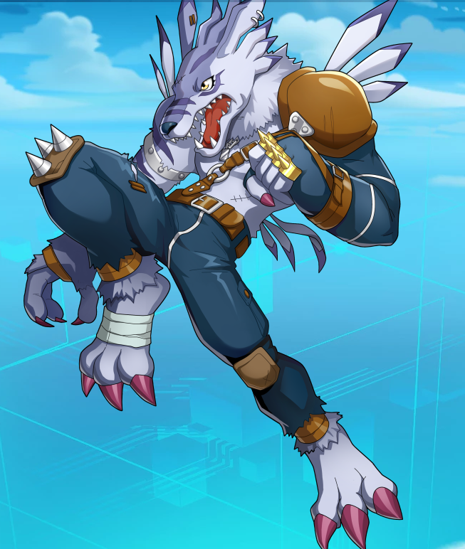 加鲁鲁兽进化的可以双脚步行的兽人型数码宝贝。由于变为双脚步行而丧失了速度,但是有了更强的攻击力和防御力,而且也是掌握战术性的指挥型数码宝贝。加鲁鲁兽遗留的脚力所施展的踢技尤为强烈,跳跃力在数码宝贝中也是数一数二。