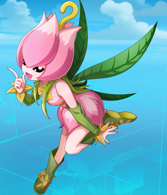 从美丽盛开的花瓣中诞生的妖精型数码宝贝。外表看上去像人类的小孩,不过却隐藏着深不可测的完全体数码宝贝的力量。能用背后长出的四片叶状羽翼飞上天空,当花仙兽飞起来后,据说就会吹起清爽的微风。
