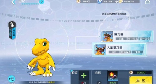 2、第一天这个就是神攻击很强进化到究极体输出很高,进化的时候要注意一下别进化错了要暴龙兽然后第一天有个魂石就是暴龙兽的究极体了。