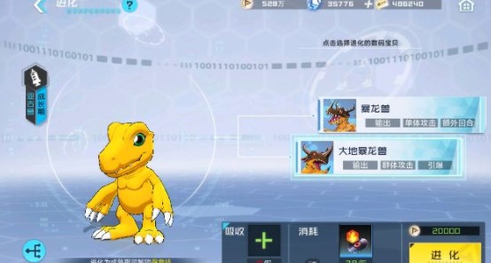 上线就给个暴龙兽这个数码兽是前期不错的选择大老除外,这个进化的路线很多建议以他位中心去搭配整容,有很多选择前期,第一天这个就是神攻击很强进化到究极体输出很高,进化的时候要注意一下别进化错了要暴龙兽然后第一天有个魂石就是暴龙兽的究极体了