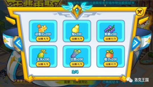 点击【抵钻卡兑换】即可查看兑换列表,进行兑换,每种兑换均可兑换2次,小洛克们可以通过自己的需求选择。