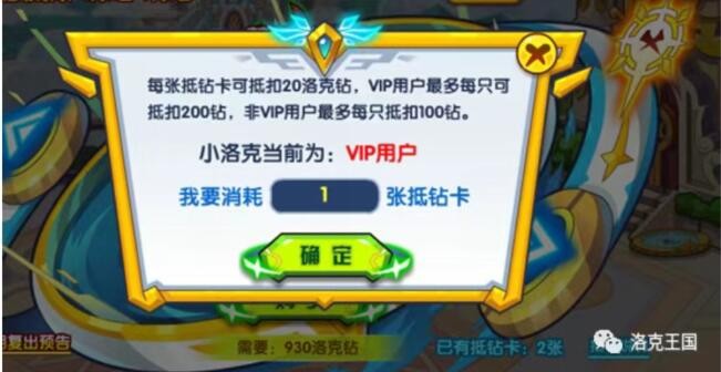 每张抵钻卡可抵扣20洛克钻,非VIP用户和VIP用户每只年费宠物可抵扣的上限不同,vip用户每只年费宠物最多可抵扣220洛克钻,非vip用户每只年费宠物最多可抵扣100洛克钻。