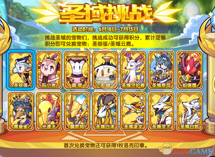 挑战圣域的宠物们,挑战成功可获得积分,累计足够积分即可兑换宠物:圣箜篌/圣域云鹿。
