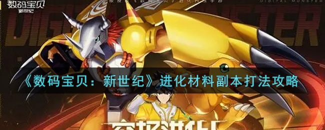 《数码宝贝:新世纪》游戏中的进化材料副本可以获得很多进化材料,想必有很多小伙伴不太清楚进化材料副本怎么打,下面小编给大家带来数码宝贝新世纪进化材料副本打法攻略,感兴趣的小伙伴们一起来看看吧。