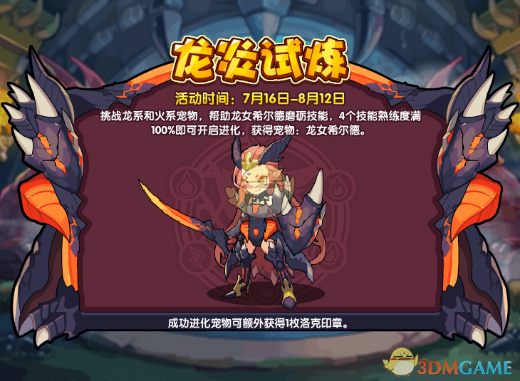 挑战龙系和火系宠物,帮助龙女希尔德磨砺技能,4个技能熟练度满100%即可开启进化,获得宠物:龙女希尔德。