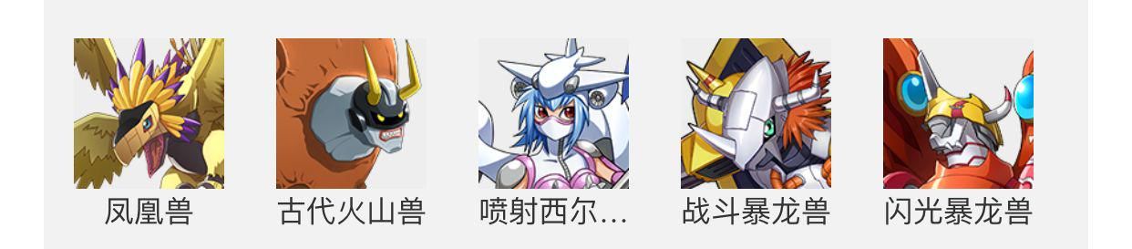 第一套:古代火山兽-凤凰兽-闪光暴龙兽-战斗暴龙兽-喷射西尔芙兽