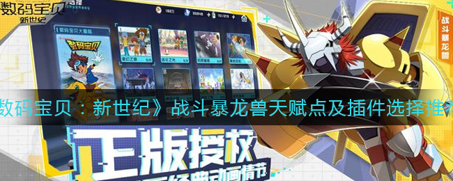 《数码宝贝:新世纪》游戏中战斗暴龙兽天赋点和插件很多玩家不知道选什么,那么今天小编就给大家介绍一下数码宝贝新世纪战斗暴龙兽天赋点及插件选择推荐,有需要的小伙伴不要错过了。