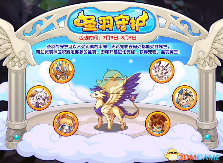 帮助灵羽神卫积累足够多的圣羽,即可开启进化资格!获得宠物:圣羽翼王