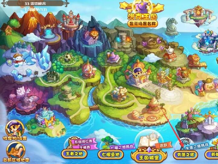 失落之塔位置并不难找,进入游戏,点击【王国城堡】左侧图标,进入区域地图,点击下方的【失落之塔】,点击中央的塔建筑即可去选择【普通闯塔、快速闯塔、一键闯塔】,选好进入塔内。