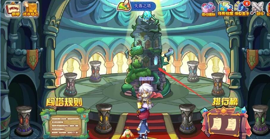 3、失落之塔就是以前的通天塔了,点击中央的塔建筑