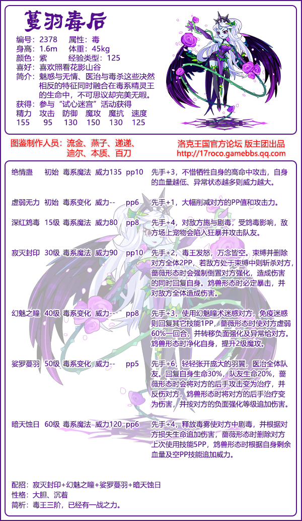 《洛克王国》蔓羽毒后技能属性图鉴
