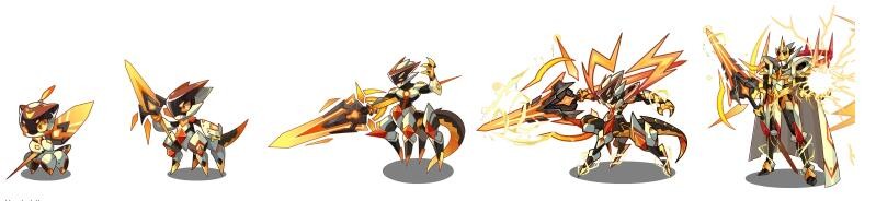 进化路线:闪电勇者→雷光骑士→霹雳统领→圣电雷王→天极圣雷王