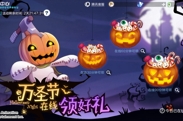 在线90分钟奖励:南瓜灯笼*2、10w金币。