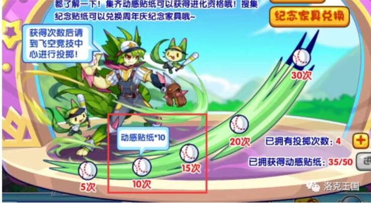 在2021洛克王国十一周年【投出个好运】活动中,参与投掷,次数在第5次、第10次,第15次,第20次,第30次,可以获取动感贴纸,集齐动感贴纸可获得王牌灵猫进化资格,需要准备满级的魔力猫,且进化次数不限。