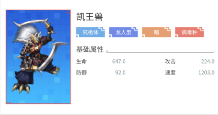 效果:受到攻击时有25%概率反击攻击者,造成159%的伤害。被暴击时反击概率增加至100%。其它队友受击时,凯王兽也有5%的概率发动反击。