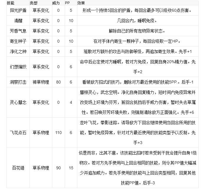 《洛克王国》王牌灵猫技能表