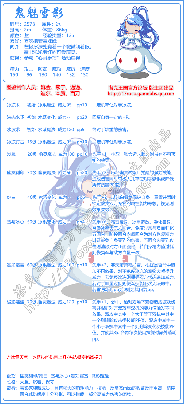 《洛克王国》鬼魅雪影技能属性图鉴