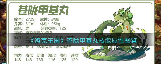 《洛克王国》苍陇甲基丸技能属性图鉴