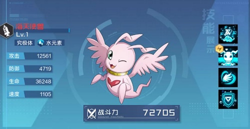 2、第二位值得投资的富足数码宝贝便是海天使兽,T0虽然海天使还是有点勉强的,但是T1的强度它那绝对是当仁不让的,毕竟能补血,能加护盾、还能群体免疫的数码宝贝在目前游戏中也是寥寥可数。凭借着有益的辅助效果,海天使也是目前版本中极为值得投资的辅助数码宝贝。保底0破即可使用,推荐4破后在第1回合即可施加群体免疫。