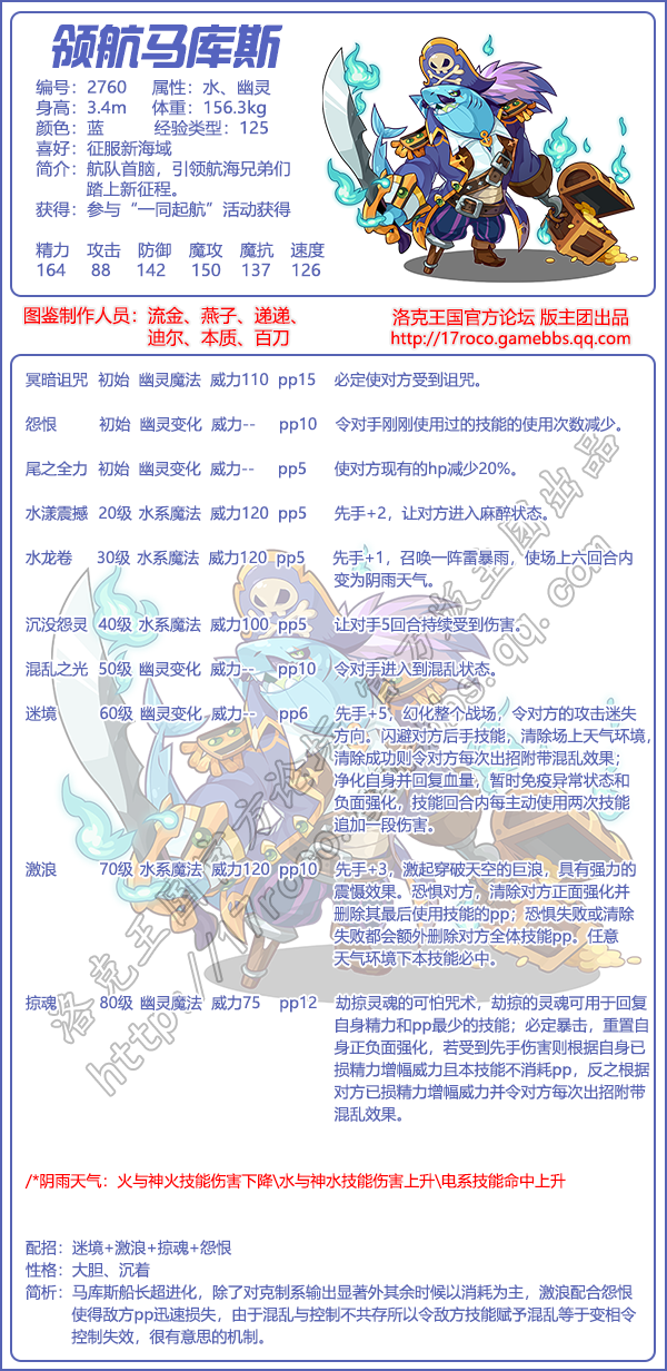 马库斯船长超进化,除了对克制系输出显著外其余时候以消耗为主,激浪配合怨恨使得敌方pp迅速损失,由于混乱与控制不共存所以令敌方技能赋予混乱等于变相令控制失效,很有意思的机制。