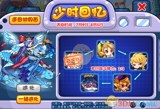 豪炎战神回忆线,第一天找可丽希亚战斗,boss为苍翼天使,有被动免疫,老规矩牛姐直接抽,战斗胜利等待明天的回忆就行了