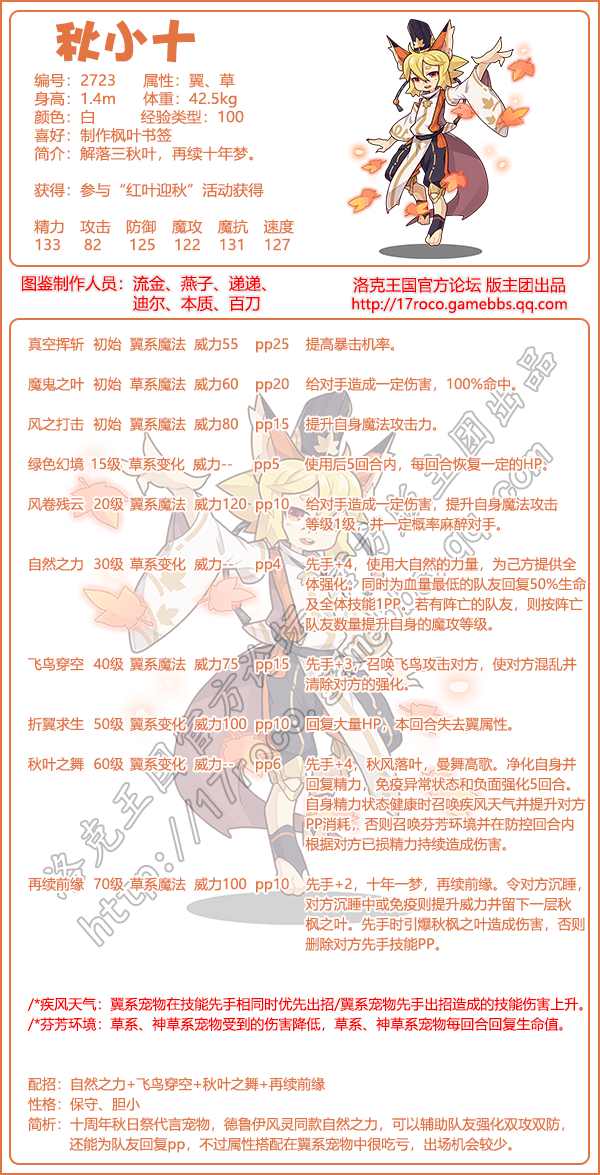 以上就是小编整理带来的《洛克王国》秋小十技能图鉴介绍,大家还喜欢吗?更多精彩内容,请点击关注易采游戏网,小编将持续为您更新!