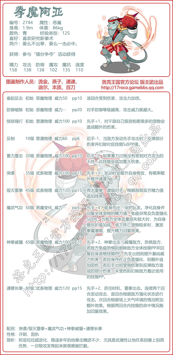 以上就是小编整理带来的《洛克王国》拳魔阿亚技能图鉴介绍,大家还喜欢吗?更多精彩内容,请点击关注易采游戏网,小编将持续为您更新!