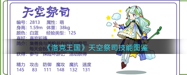 《洛克王国》天空祭司怎么样,厉害吗?洛克王国手游是一款画风很小清新的RPG类冒险竞技手游,游戏中宠物角色非常多,下面小编就给大家带来了《洛克王国》天空祭司技能图鉴介绍,一起看看吧!