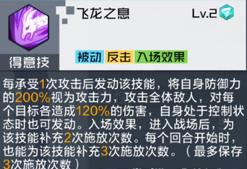 技能解析:自身每遭受一定次数的攻击便能对敌方全体造成一次伤害,即便处于控制状态依然可以发动。该技能具有施放次数的限制,在入场时、每回合开始时、通常技发动连击时都可以补充施放次数(施放次数最多保存3次)。