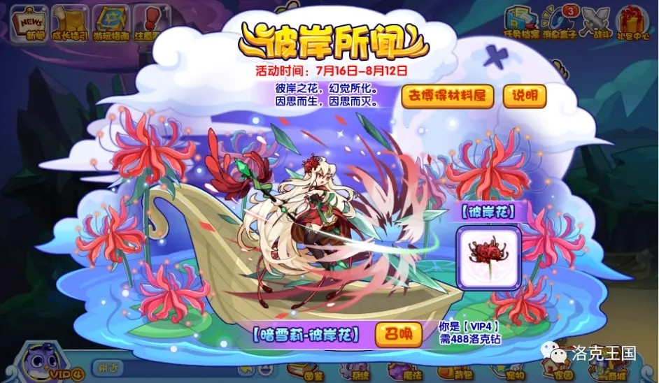 1.需要消耗洛克钻对暗雪莉·彼岸花进行召唤。单次召唤成功后可同时获得彼岸花x1。彼岸花的实际作用等同于升级果,可让宠物直接升1级。