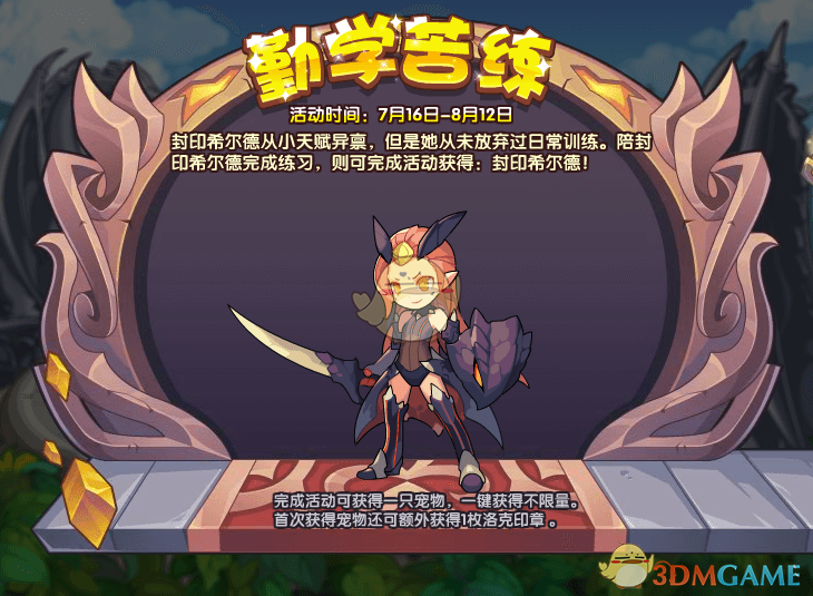 封印希尔德从小天赋异禀,但是她从未放弃过日常训练。陪封印希尔德完成练习,即可完成活动获得:封印希尔德!