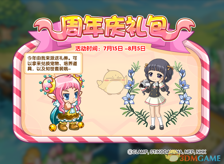 活动获得:知世友枝中学装扮,宠物,道具等