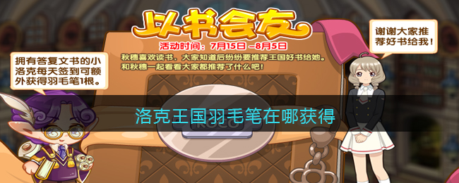 洛克王国游戏中羽毛笔需要在魔法学院地图中逛才能刷新出来,到时候就可以直接拾取获得了!另外,拥有答复文书的玩家每天签到可以领取羽毛笔1根。