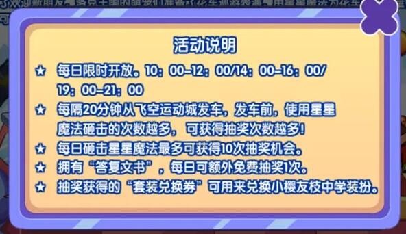 拥有答复文书的玩家参与学园祭花车巡游活动时,每日可额外免费抽奖1次抽奖。
