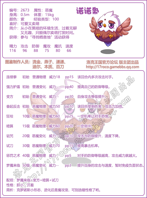 洛克王国诺诺枭怎么样,厉害吗?洛克王国手游中精灵角色非常多,很多宠物大家都想知道他们的技能表是怎么样的,下面是小编给大家带来的《洛克王国》诺诺枭技能图鉴介绍,感兴趣的速来围观吧!