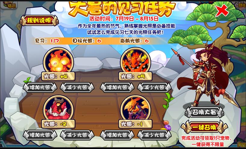 大暑见习任务以前也是出过的,估计玩法是一样的,给大家一个参考图: