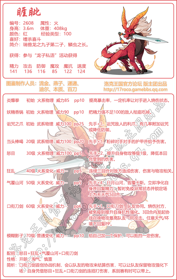 洛克王国睚眦怎么样,厉害吗?洛克王国手游中精灵角色非常多,很多宠物大家都想知道他们的技能表是怎么样的,下面是小编给大家带来的《洛克王国》睚眦技能图鉴介绍,感兴趣的速来围观吧!